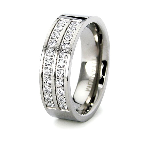 6.5mm Women's Titanium Wedding Band with 22 White Pave Set CZs (Sizes 6-8) By West Coast Jewelry With Special Offer |