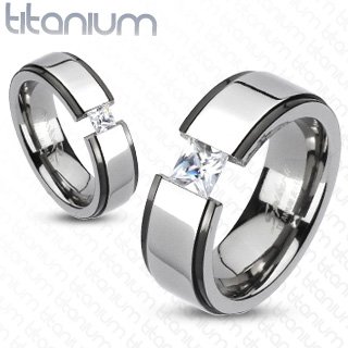Solid Titanium 2-Tone Beveled Band Ring with Princess Cut Cubic Zirconia - Width: Size 5-8: 6mm / Size 9-13: 8mm - Sizes: 5-13...see more| ♦ Good Product ♦ ♦ Good Price ♦ ♦ Don't Be Hesitate To Get It ! ♦ |