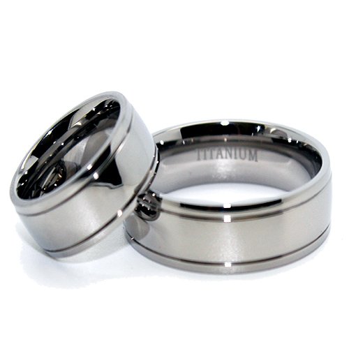 Blue Chip Unlimited - Matching 8mm Classic Polished Titanium Rings with 2 Grooves His & Hers Rings Wedding Bands Engagement Rings (Available in Whole & Half Sizes 4-16) By Blue Chip Unlimited With Special Offer |